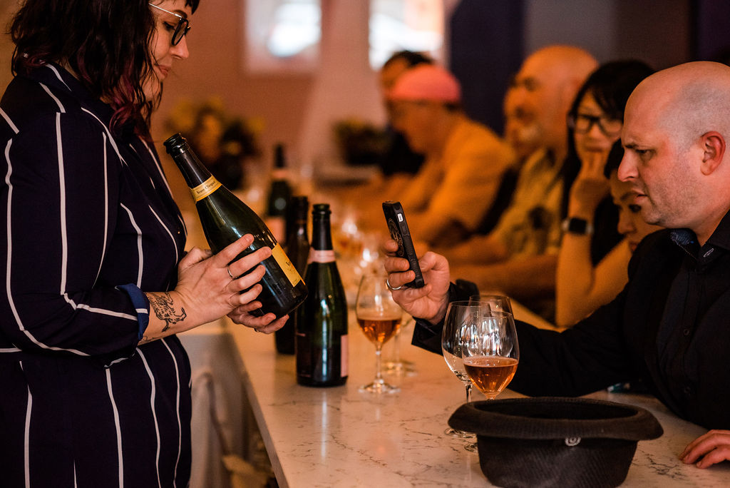 Dom Pérignon Brand Ambassador Diego Meraviglia and DECANTsf's Cara Patricia preview the 2006 Vintage Rosé and the 2002 P2 to invited sommeliers in the San Francisco Bay Area on June 24, 2019. Photos by Dirk Wyse.
