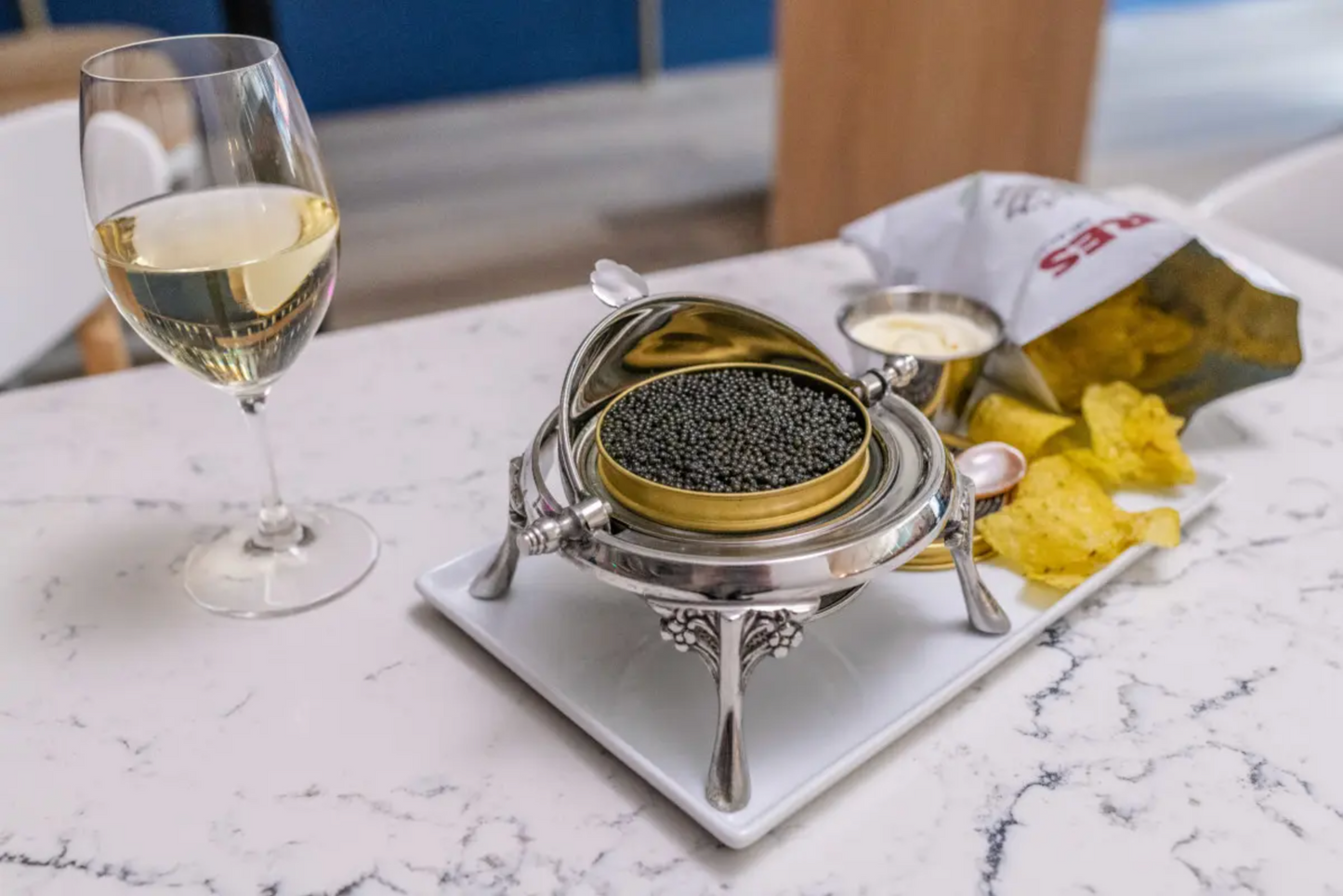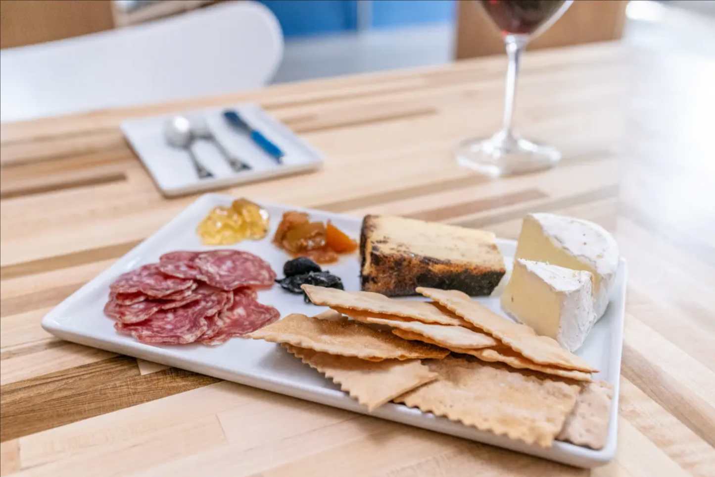 Food and Beverage: Enjoy a selection of wine-friendly snacks, including cheeses, charcuterie, caviar, and Iberian-inspired tinned fish, expertly paired with our global and sustainable wine and beer offerings. We also provide a variety of alcohol-free options for non-drinkers, as well as work with talented caterers for larger meals.